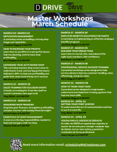 Here is the DRIVE Master Workshop Schedule for March 2026.